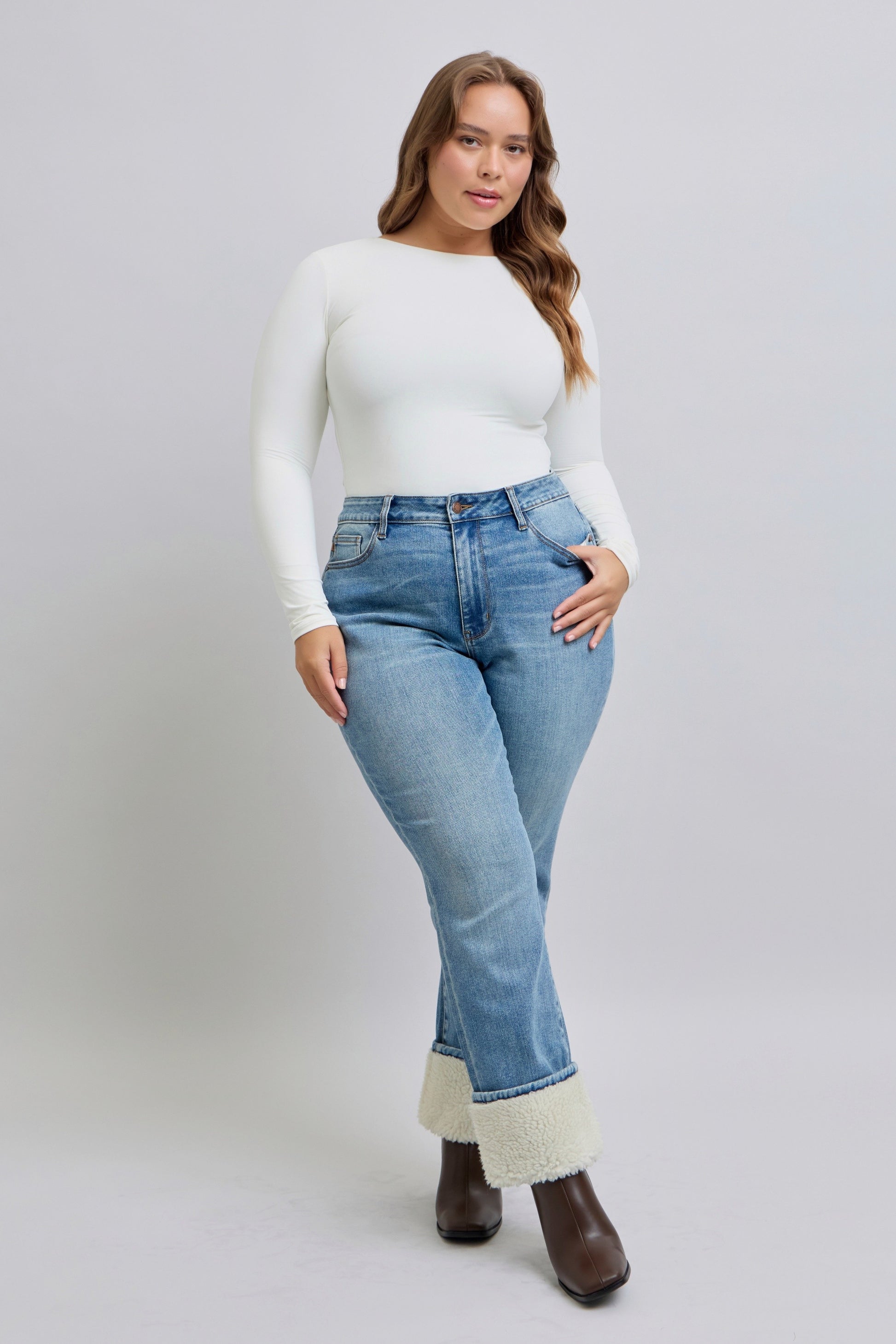 HW Shearling Cuff Straight 76.2 Cotton / 22.5 Polyester / 1.3 Spandex FRONT RISE: 12" INSEAM: 30" 35" CUFFED / UNCUFFED