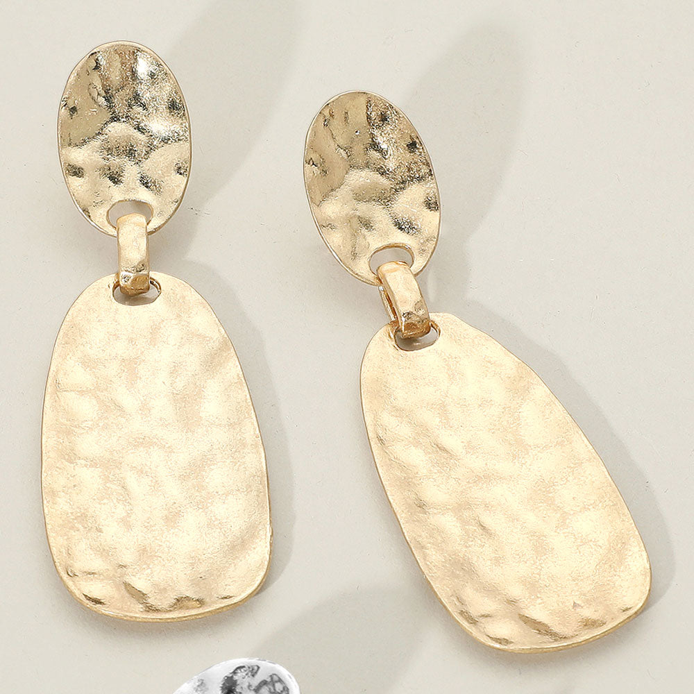 Gold Hammered Brush Drop Earrings.